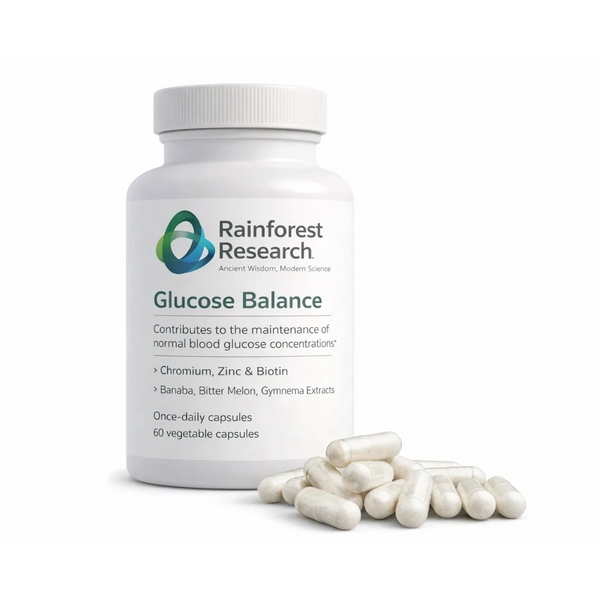 Rainforest Research’s glucose balance formula is carefully crafted and scientifically validated to maintain normal blood glucose levels while promoting overall metabolic wellbeing, making it one of the premier botanical health products.